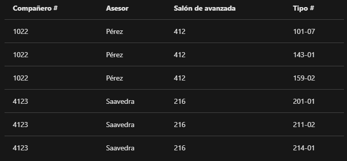 Las hojas de cálculo suelen usar la tercera dimensión, pero las tablas no deben. Otra forma de analizar este problema es con una relación de uno a varios, no ponga en el lado uno y en el lado varios de la misma tabla. En su lugar, cree otra tabla en la primera forma normal eliminando el grupo extensible (número de clase), como se muestra a continuación:
