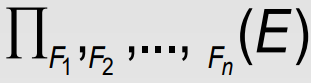 donde E es cualquier expresión del álgebra relacional y F1, F2, ..., Fn son expresiones aritméticas que incluyen constantes y atributos en el esquema de E. Como caso especial la expresión aritmética puede ser simplemente un atributo o una constante.
